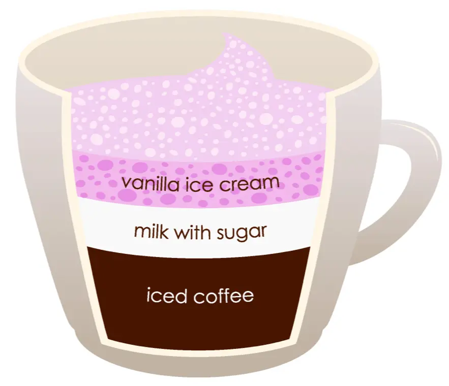 Step 1: Using a tablespoon, add two scoops of vanilla ice cream to an 8 oz (240 ml) cup.
