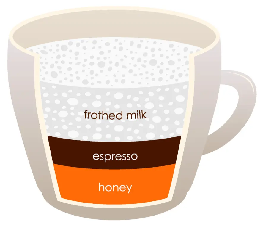 Step 4:Once extraction has complete, add 80 ml of honey to your espresso