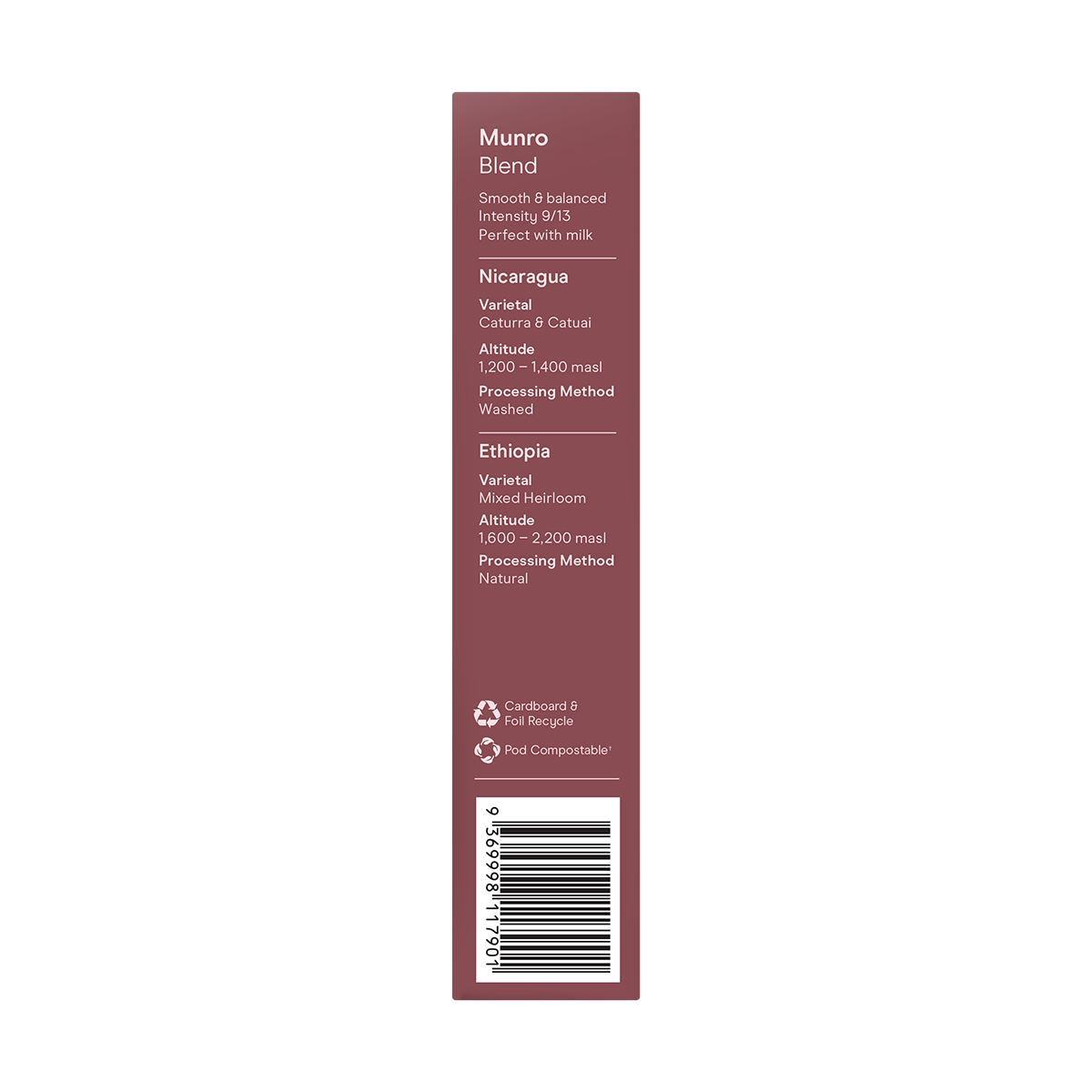 One of our darkest blends. Munro’s arabica beans offer a mild acidity and thick body with rich notes of chocolate and hazelnut. Tempted? Then we added beans with sweeter notes of panela and dried fruits for balance. (You definitely should be now.)